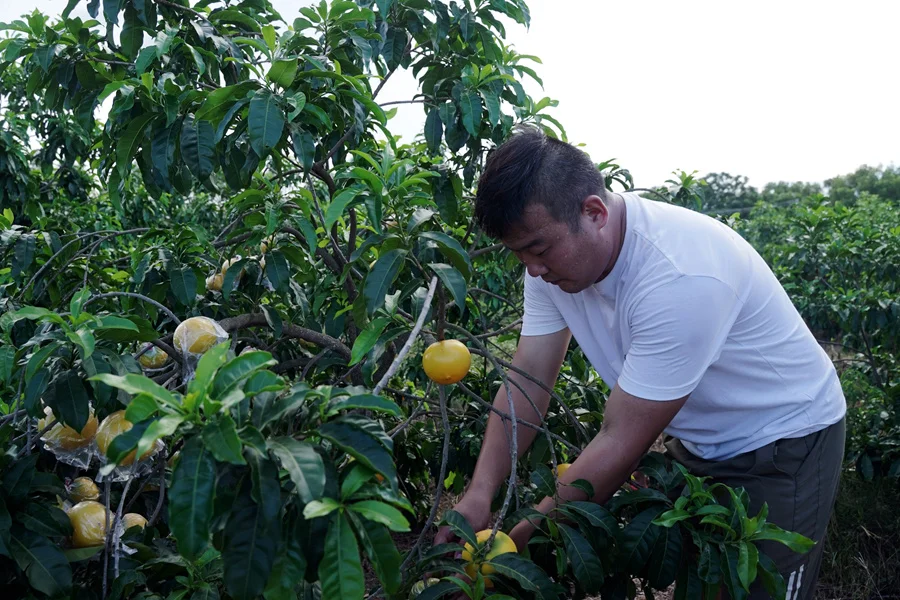 在亞熱帶地區(qū)種植熱帶水果,徐蘭治的團(tuán)隊(duì)花了一番心思。剛開(kāi)始,基地種植了5000多株黃晶果,經(jīng)過(guò)這兩年的種植,從中優(yōu)中選優(yōu),留下了1800多棵。記者看到,該基地內(nèi),黃晶果果樹(shù)都經(jīng)過(guò)了矮化,果樹(shù)不高,黃晶果伸手可摘。徐蘭治說(shuō),黃晶果整個(gè)生長(zhǎng)期管理難度不大,最費(fèi)人工的是掛果后的套袋工作。每個(gè)果實(shí)結(jié)出后,都要套上保護(hù)袋,防止蟲(chóng)害和鳥(niǎo)啄。