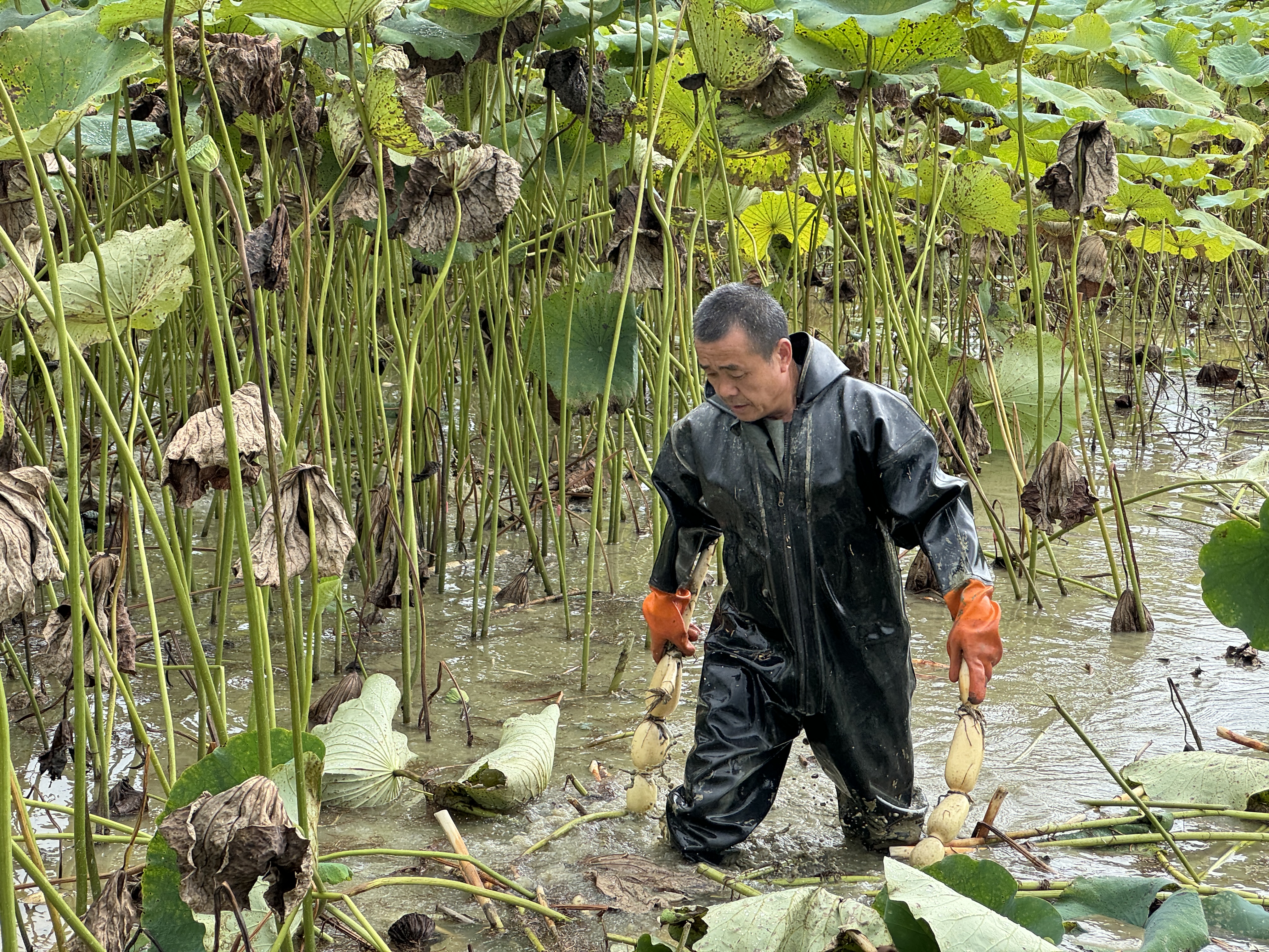 惠州日?qǐng)?bào)訊 (記者黃尉宏 通訊員惠陽融媒)辭去映日荷花,喜迎蓮藕豐收。惠陽區(qū)沙田鎮(zhèn)東明村27畝蓮藕迎來采收季,身穿連體水褲的藕農(nóng)嫻熟地在水里挖出一根根蓮藕,享受豐收帶來的喜悅。