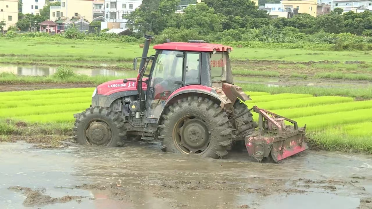 拖拉機在田間開展旋耕作業(yè)。 惠州日報記者賴金朗 特約通訊員李文聰 攝