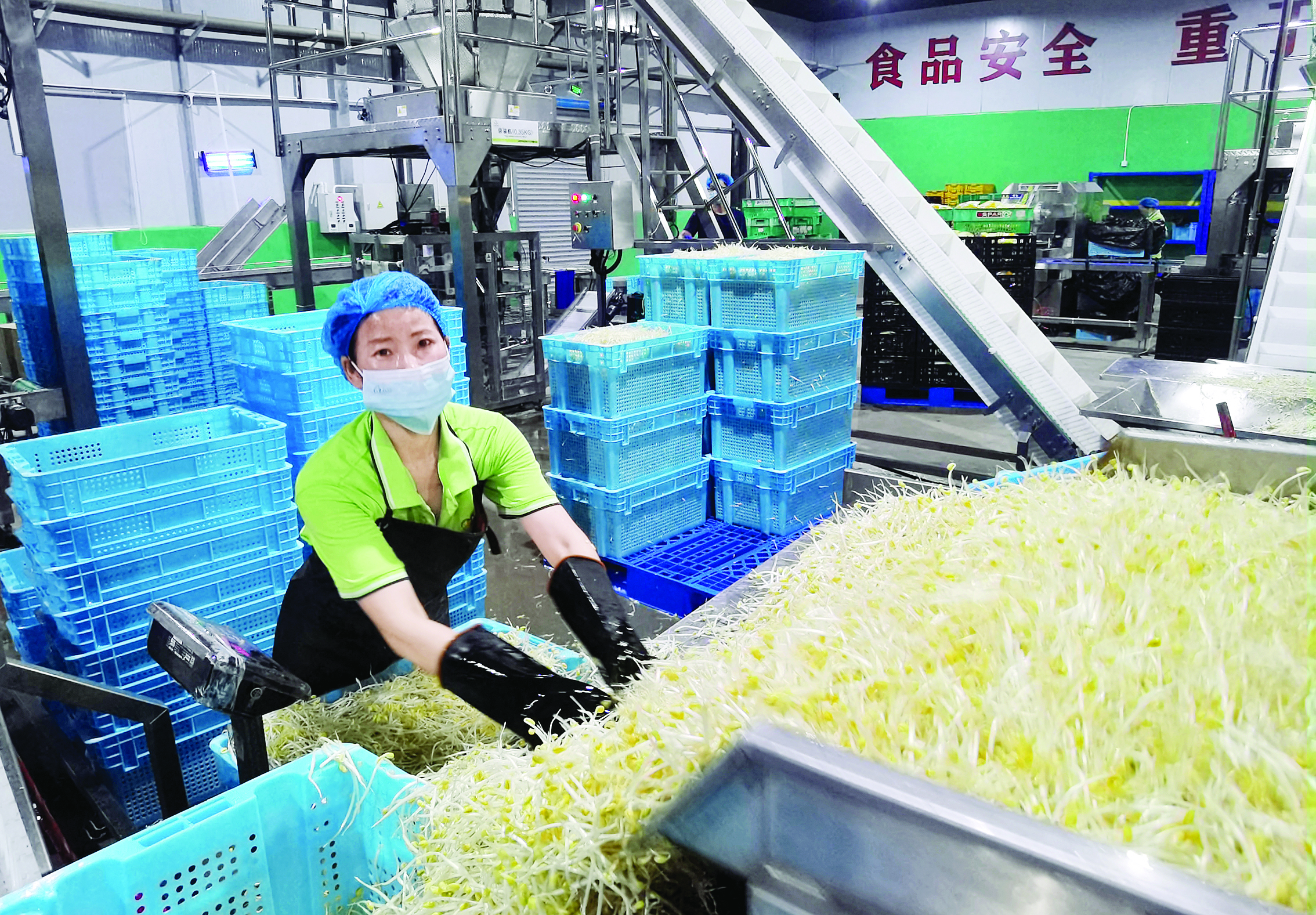 近日,記者走進(jìn)芯芽農(nóng)業(yè)生產(chǎn)車間,只見豆芽清洗、分裝生產(chǎn)線上,工人們忙個不停。一個個大方艙里盛滿鮮豆芽,導(dǎo)入輸送鏈后清洗、去殼、分裝到筐;車間外,工人將一筐筐豆芽裝上冷鏈貨車,準(zhǔn)備運往周邊城市各大批發(fā)市場,一派產(chǎn)銷兩旺場景。