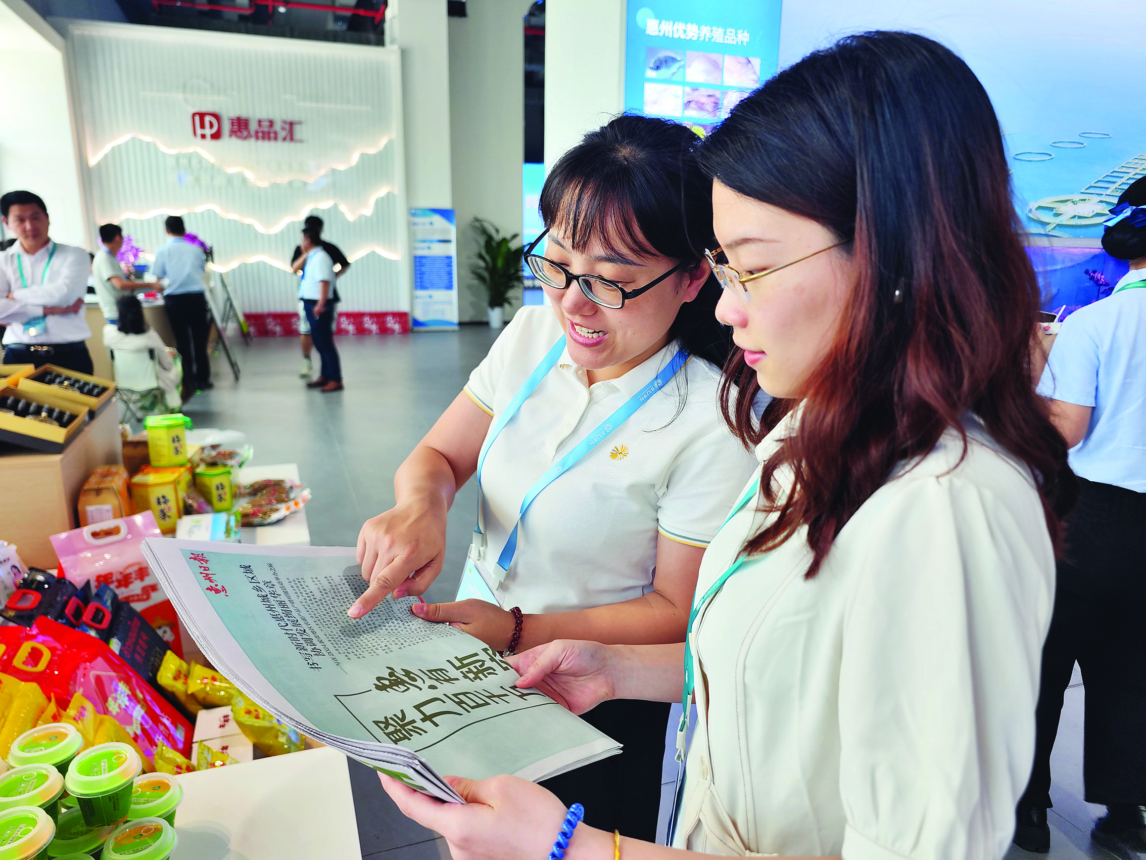 現(xiàn)場(chǎng)商家正在翻閱惠州日?qǐng)?bào)特刊。惠州日?qǐng)?bào)記者黃鑫威 攝
