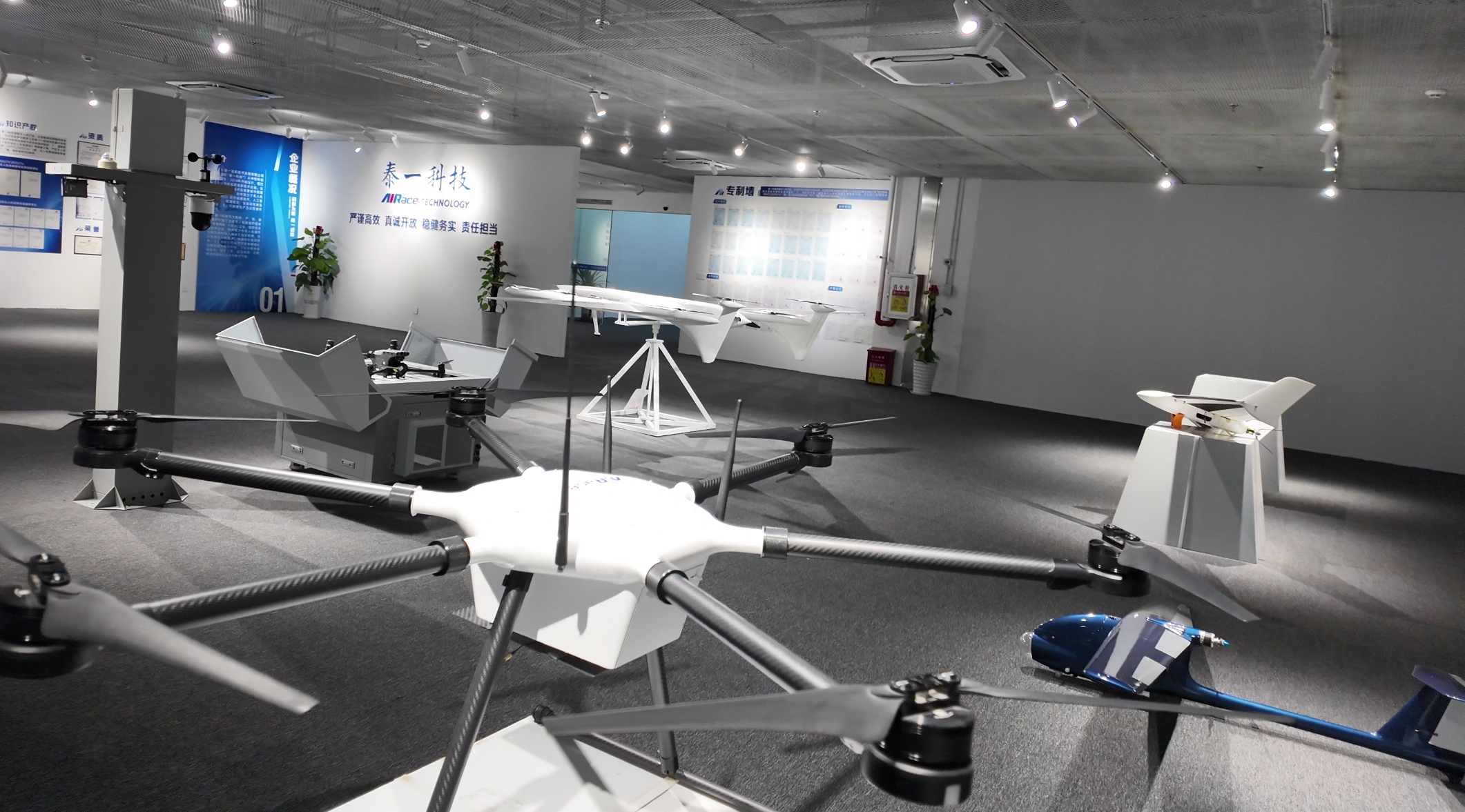 廣東泰一高新技術(shù)發(fā)展有限公司展廳內(nèi)的行業(yè)無人機(jī)。惠州東江圖片社供圖