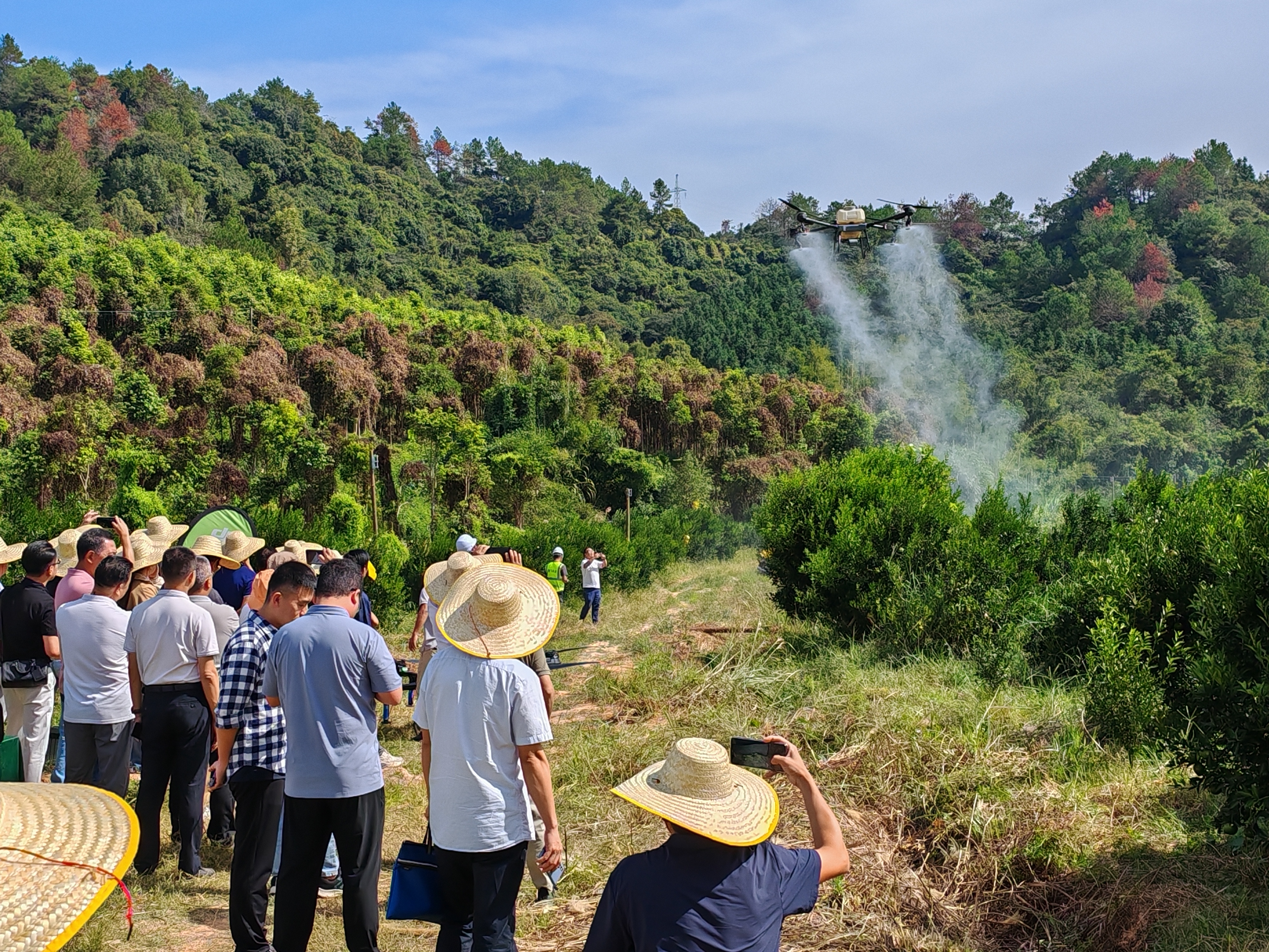 日前,在龍門縣龍?zhí)镦?zhèn)的綠盛柑桔種植園內(nèi),一架植保無人機(jī)在群山環(huán)繞的種植園中“嗡、嗡”地騰空而起,細(xì)密的大流量霧滴隨之落在綠油油的葉片上……