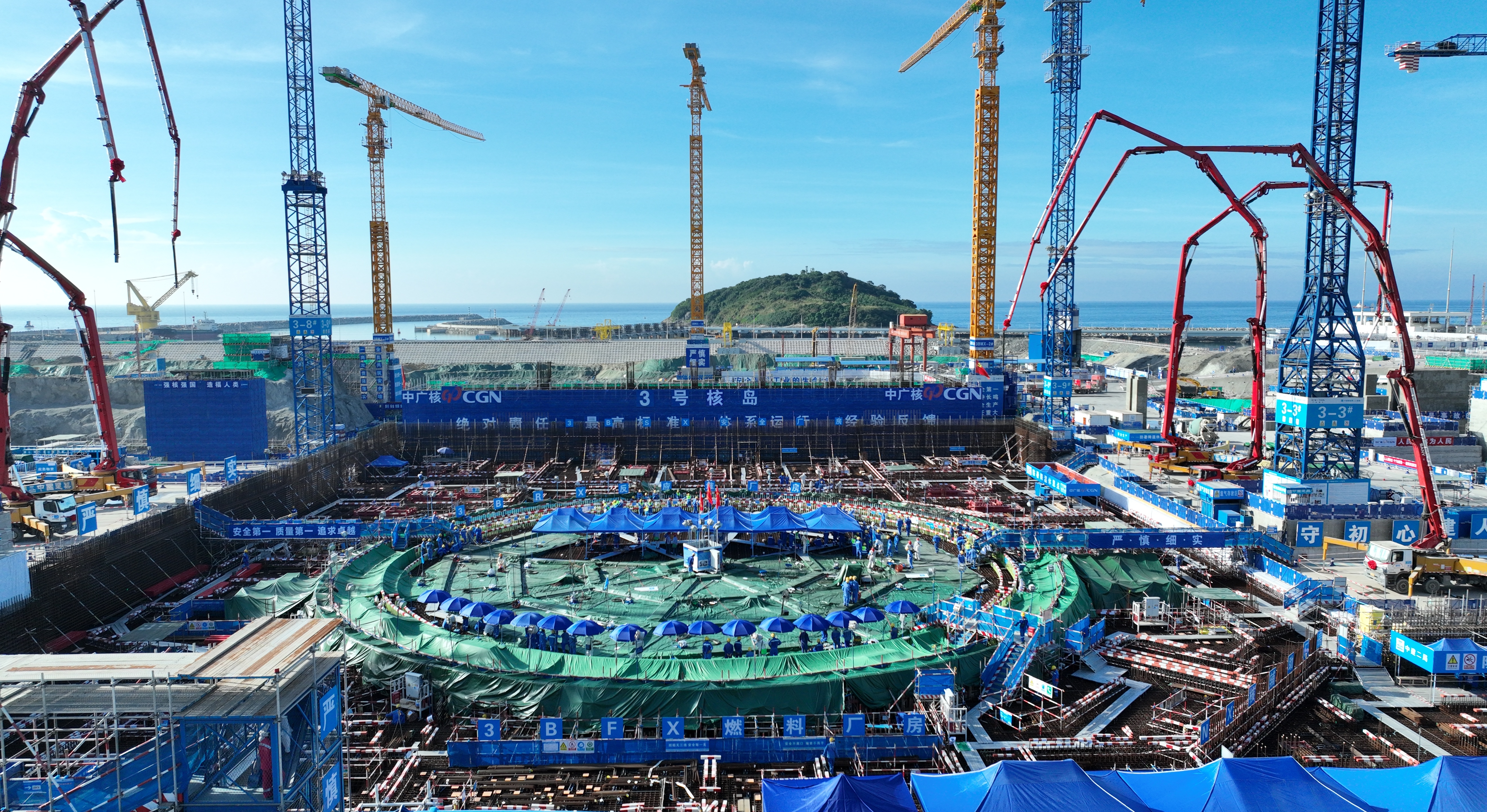 6月10日上午,中廣核廣東太平嶺核電廠3號機組核島第一罐混凝土開始澆筑。惠州日報記者黃鑫威 謝寶樹 攝