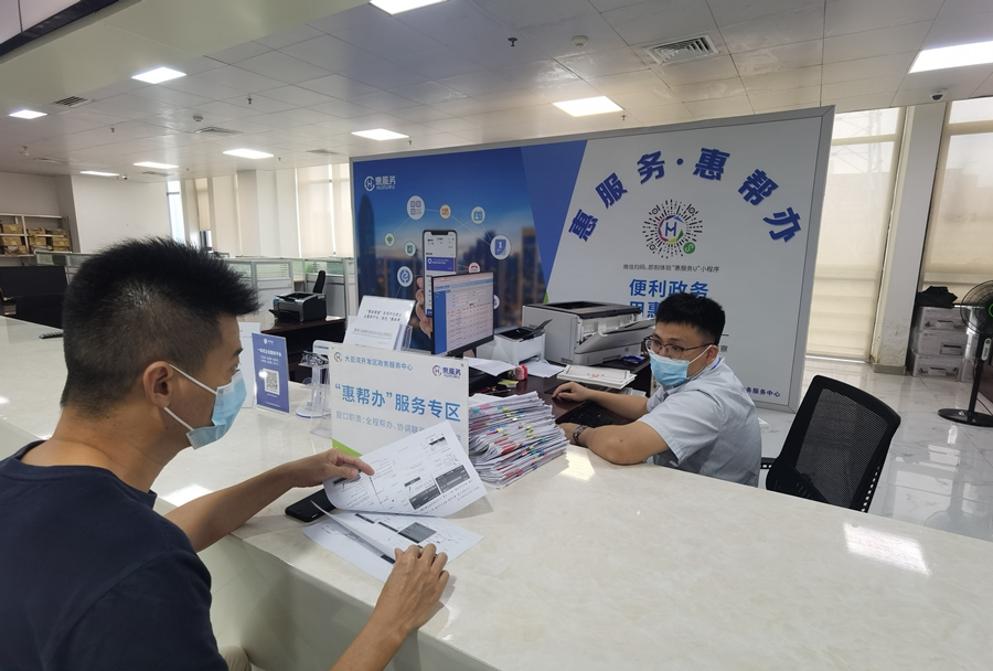 大亞灣區(qū)政務(wù)服務(wù)中心“惠幫辦”服務(wù)專區(qū)。惠州日報(bào)記者匡湘鄂 通訊員王成亮 攝