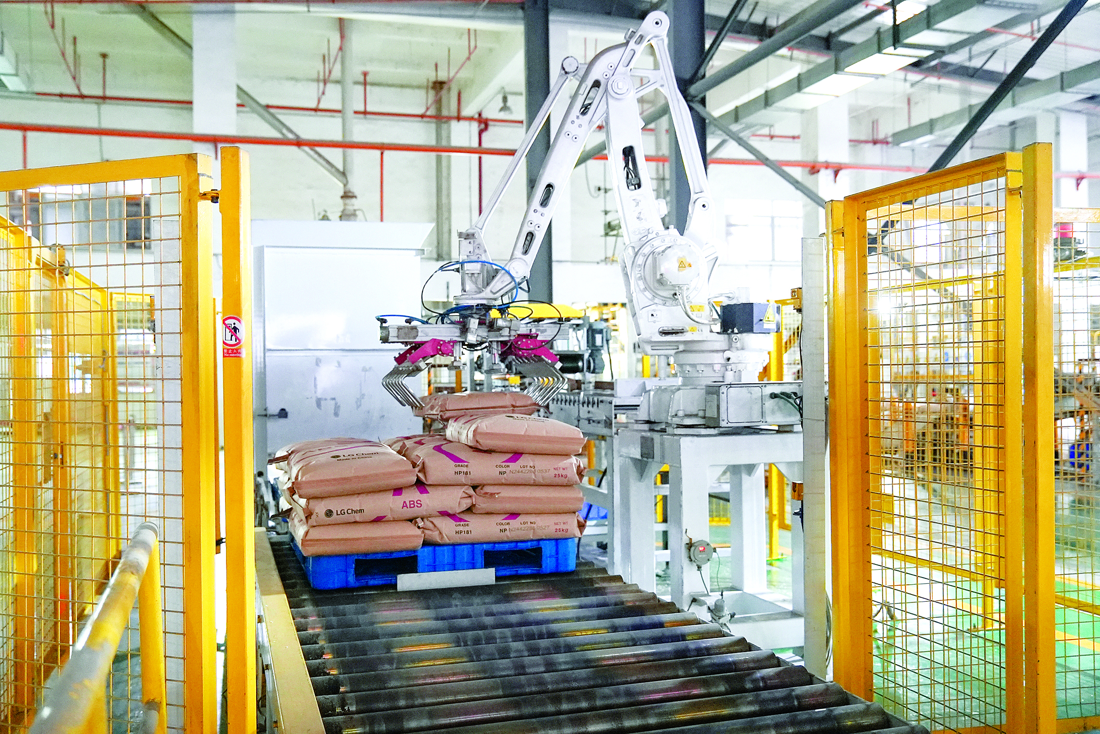 在位于惠州大亞灣石化區(qū)的樂金化學(xué)(惠州)化工有限公司(以下簡稱“樂金化學(xué)”)生產(chǎn)車間里,機(jī)械臂等設(shè)施24小時不停運(yùn)作,源源不斷地產(chǎn)出各類ABS樹脂產(chǎn)品,銷往小米、華為、美的、普聯(lián)等企業(yè),用于生產(chǎn)家用電器、電子電氣、汽車、玩具、建材等產(chǎn)品。