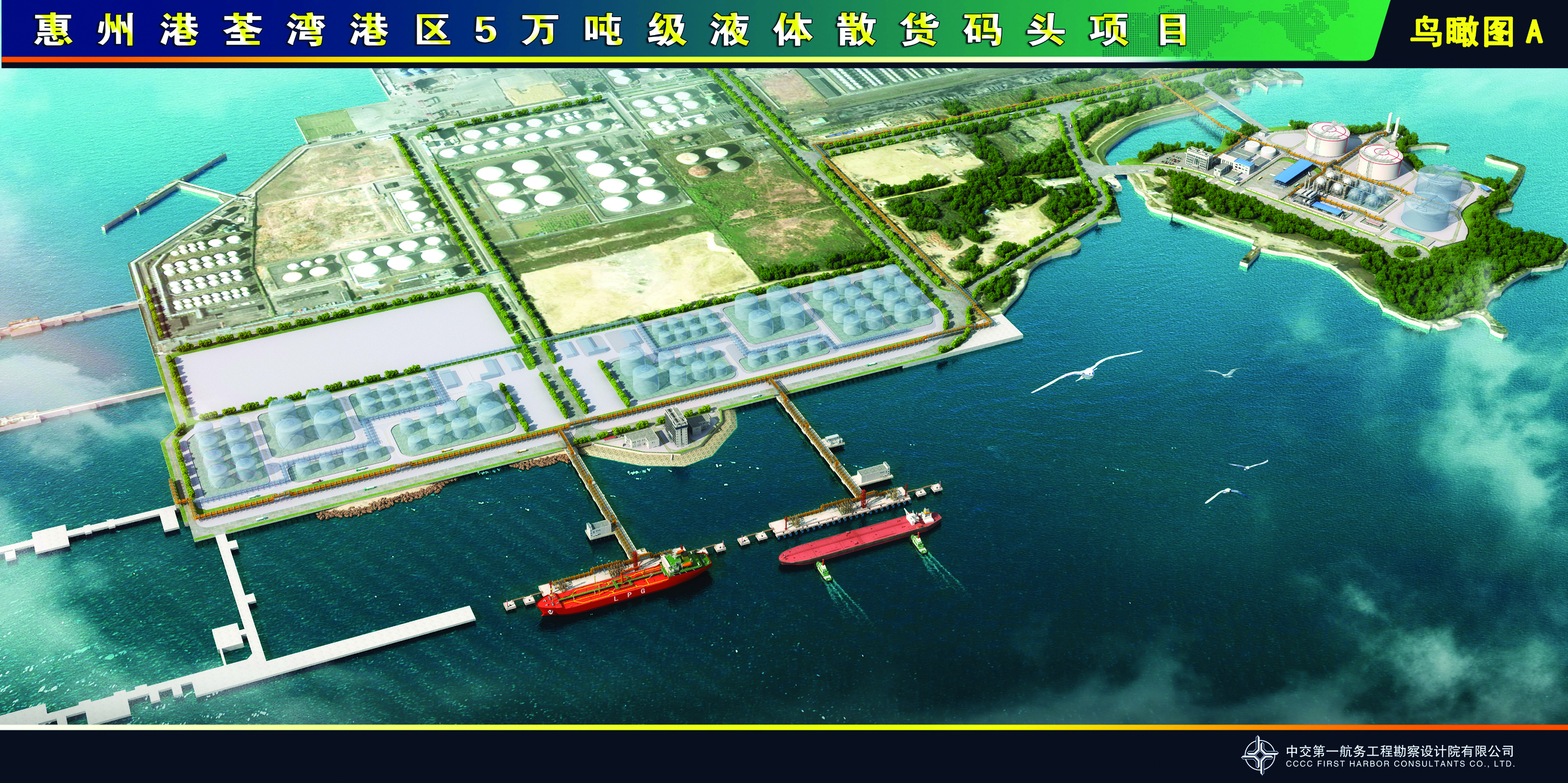 惠州港荃灣港區(qū)5萬噸級液體散貨碼頭效果圖。