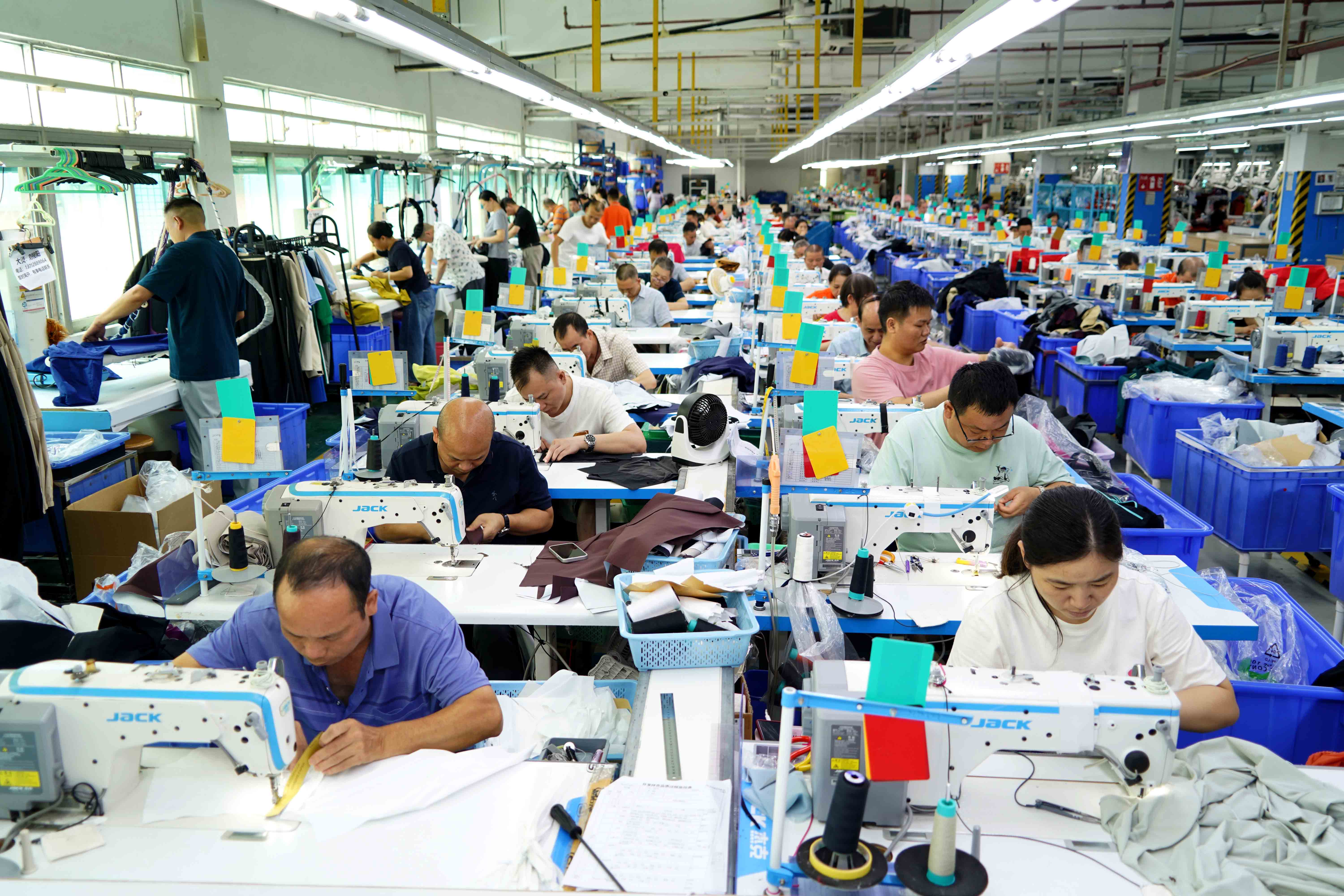 這是佳都(惠州)制衣有限公司經(jīng)過數(shù)字化升級(jí)后,生產(chǎn)車間里隨處可見的場(chǎng)景。在惠州博羅的這家服裝企業(yè)廠區(qū)內(nèi),通過自動(dòng)化、數(shù)字化改造,改寫了傳統(tǒng)制衣廠落后的生產(chǎn)模式,效率比之前顯著提升。