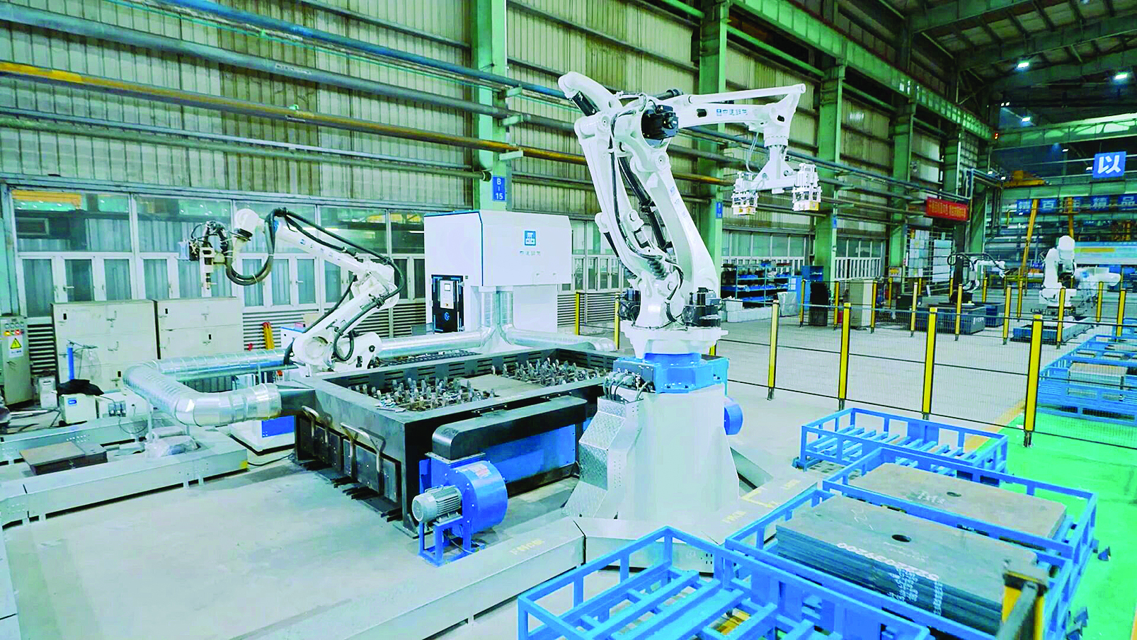 走進(jìn)中建鋼構(gòu)廣東有限公司生產(chǎn)基地,60余臺(tái)智能化機(jī)器人集群正高速運(yùn)轉(zhuǎn),智能坡口切割、懸臂式焊接等工序一氣呵成,火花四濺中,鋼板被精準(zhǔn)拼接成各類鋼構(gòu)件。今年以來(lái),該基地新增25臺(tái)工業(yè)機(jī)器人,輕鋼產(chǎn)線自動(dòng)化率顯著提升,大直徑水利管道產(chǎn)線完成高端化改造,數(shù)智化轉(zhuǎn)型不僅降低了運(yùn)營(yíng)成本,更成為企業(yè)核心競(jìng)爭(zhēng)力的重要支撐。