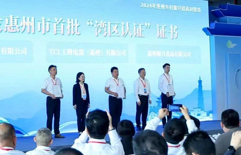 惠州市首批獲得“灣區(qū)認(rèn)證”的3家企業(yè)獲頒證書。惠州東江圖片社供圖