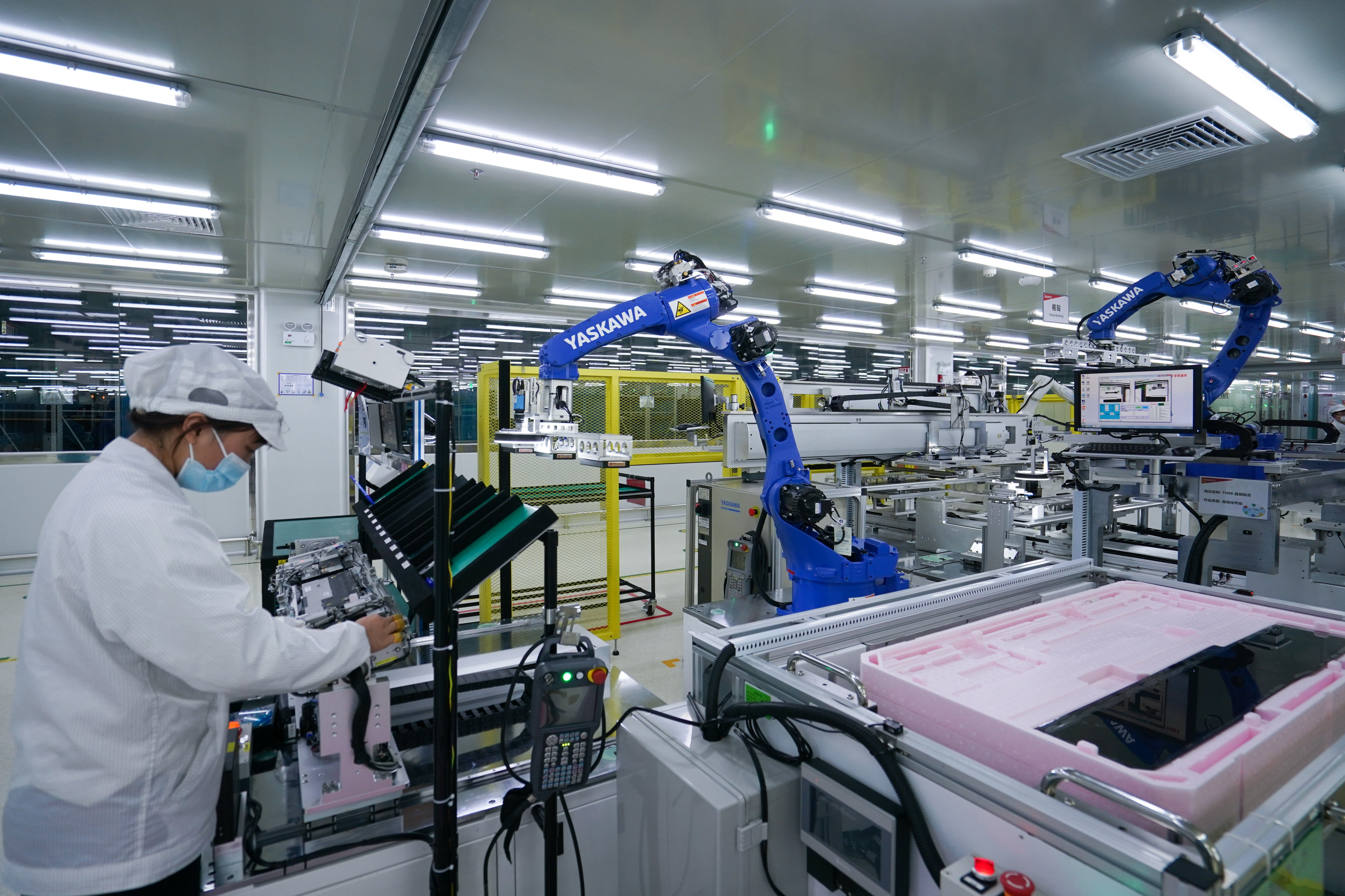惠州華陽通用電子有限公司自動化生產(chǎn)線。惠州東江圖片社供圖