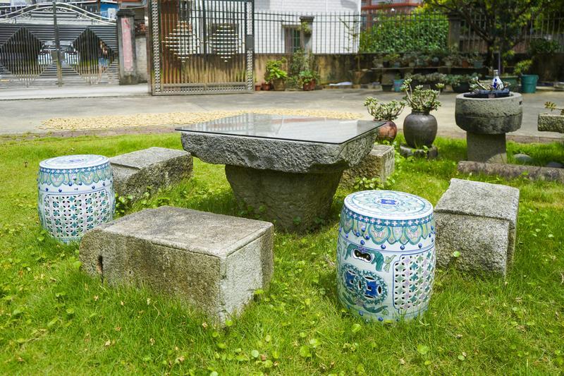 老屋的石凳用來裝扮庭院。