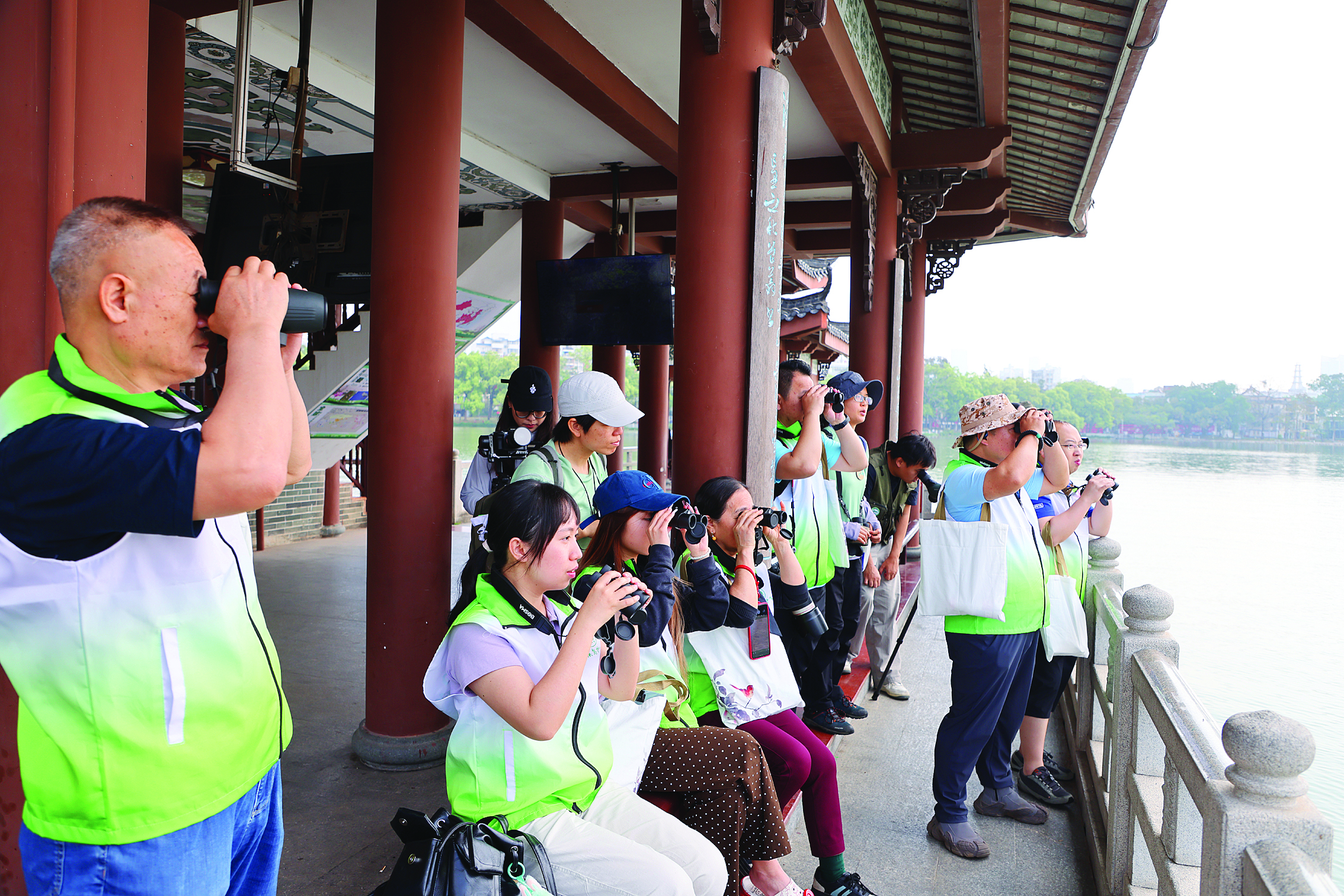 觀鳥、攝影愛好者在惠州西湖豐渚園觀鳥。惠州日報(bào)記者王建橋 攝