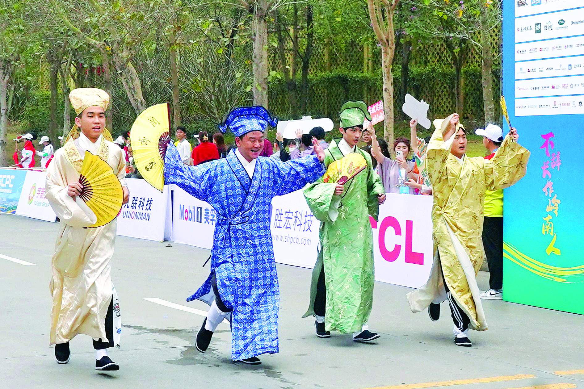 惠州版“江南四大才子”跑“惠馬”。惠州日?qǐng)?bào)記者肖泓 攝