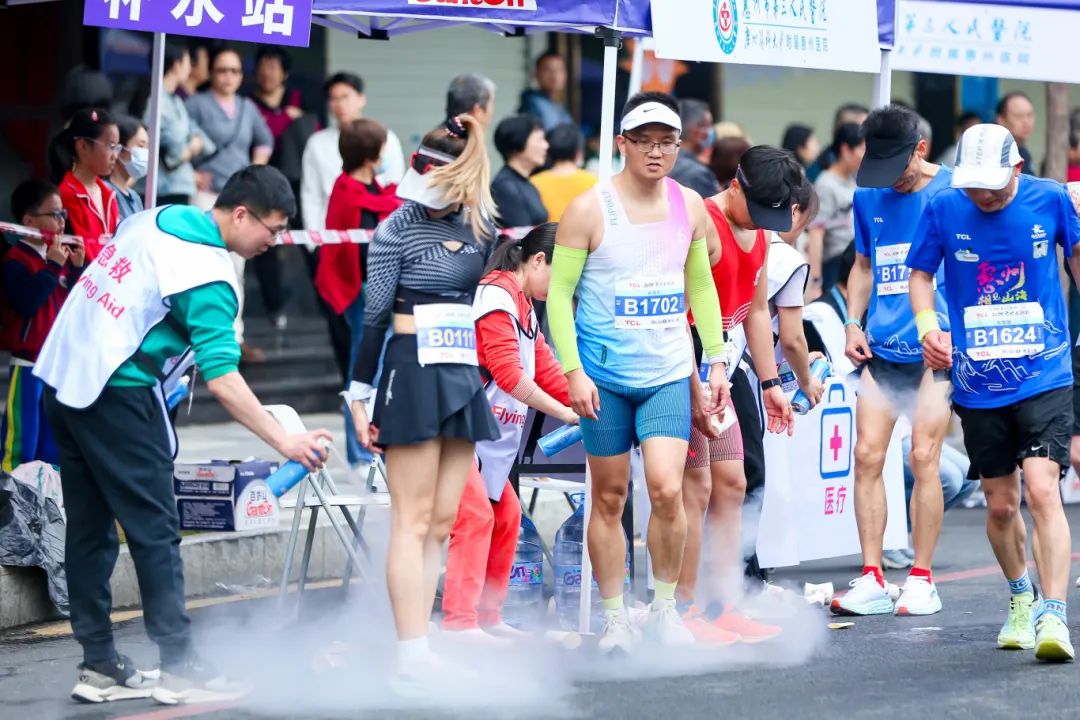 “選手們,請(qǐng)往這邊走!”“辛苦了!”“這是屬于你們的獎(jiǎng)牌和獎(jiǎng)品!”離馬拉松完賽通道還有30米,記者就聽(tīng)到志愿者們熱情地引導(dǎo)每一位選手來(lái)到完賽區(qū),為選手鼓掌,并為選手們掛上獎(jiǎng)牌、送上補(bǔ)給物資。