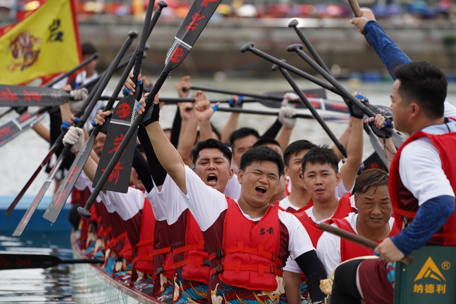 起步爭(zhēng)先、加速追逐、并駕超越、拼搏反超……海面上,龍舟競(jìng)渡,選手們揮槳如飛,一路劈波斬浪,向著終點(diǎn)奮力沖刺。岸上,人頭攢動(dòng),綿綿細(xì)雨也絲毫沒(méi)有影響市民觀賽的熱情,加油吶喊聲此起彼伏,氣氛十分熱烈。競(jìng)技的激情與觀眾的熱情交織在一起,令人熱血沸騰。