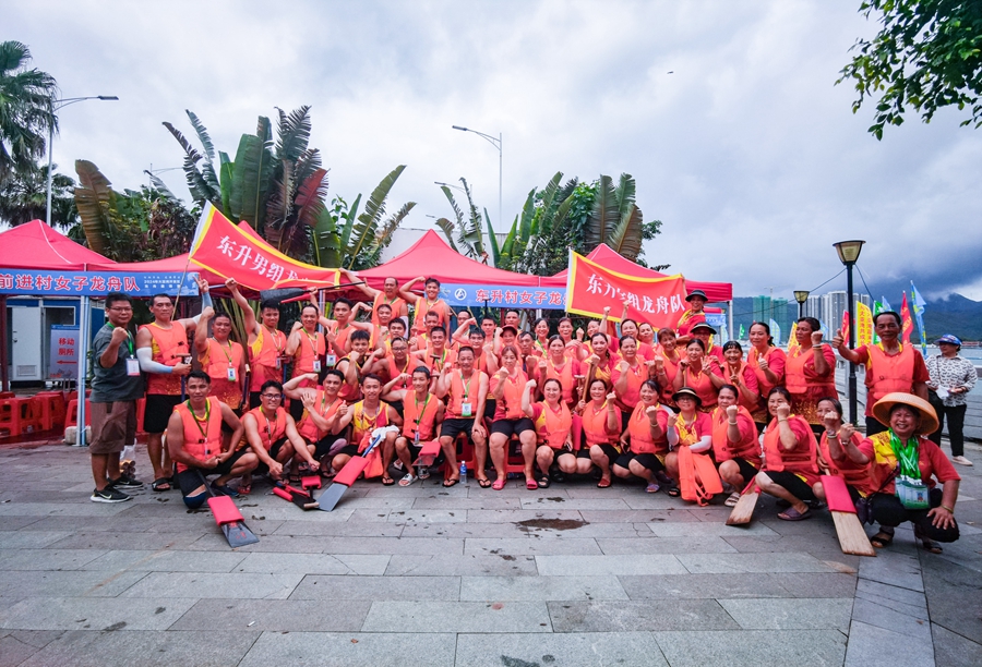 對(duì)漁民來(lái)說(shuō),海上駕舟是他們的謀生技能,劃龍舟正是一展身手的好機(jī)會(huì)。這段時(shí)間里,前進(jìn)村劃龍舟氛圍濃厚,參賽隊(duì)伍里既有夫妻檔也有父子兵,村民們還自發(fā)組成了強(qiáng)大的“后援團(tuán)”,經(jīng)常到碼頭為訓(xùn)練中的隊(duì)員加油鼓勁送補(bǔ)給。“前進(jìn)村是一座傳統(tǒng)漁村,劃龍舟對(duì)漁民來(lái)說(shuō)意義非凡,接下來(lái)我們希望繼續(xù)挖掘村里的龍舟文化,推進(jìn)文化與旅游深度融合。”前進(jìn)村干部蘇錦發(fā)說(shuō)。