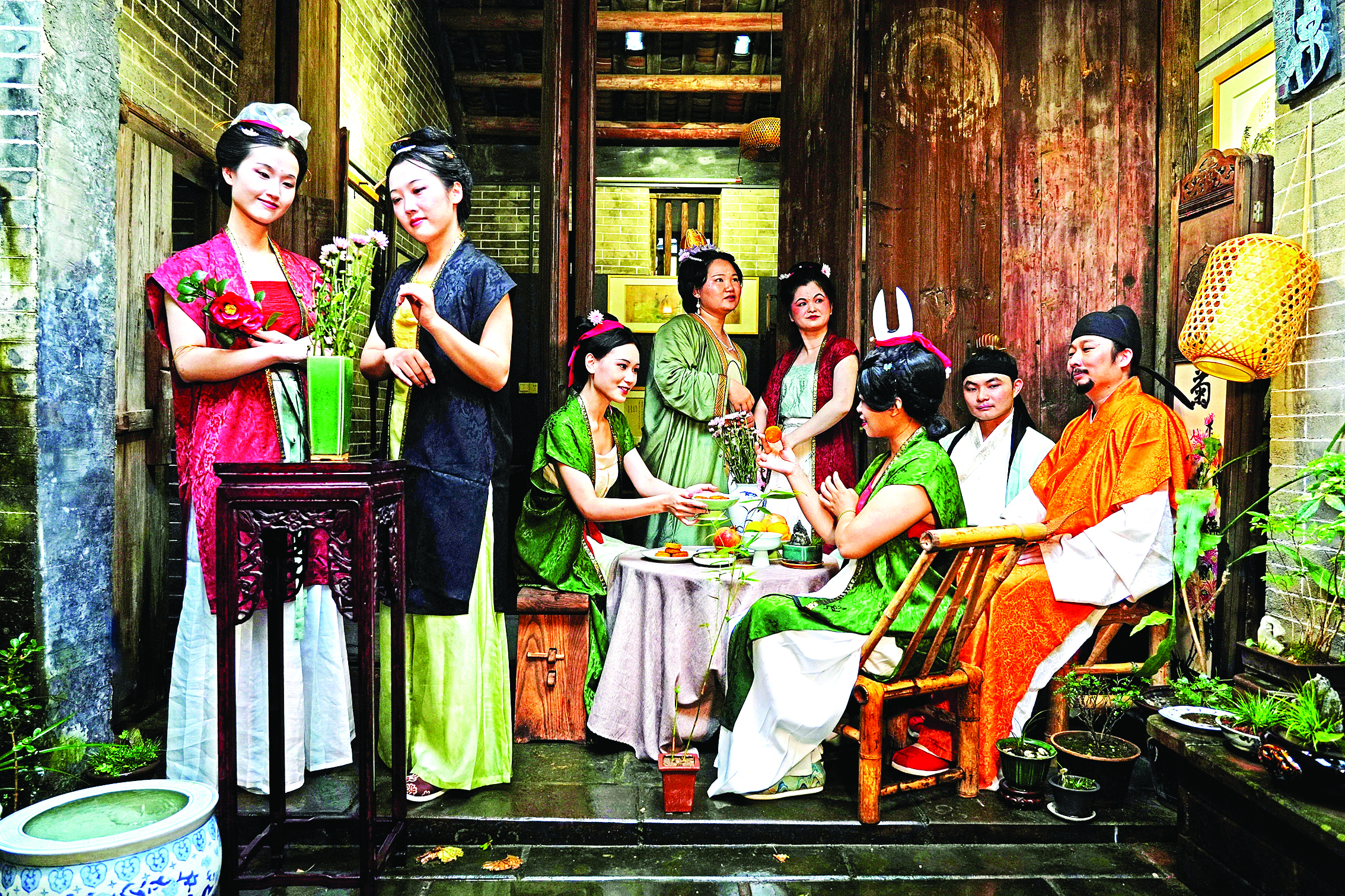 “這一次的復(fù)原宋代古人過中秋節(jié)實(shí)際上是把大家的看家本領(lǐng)都拿了出來。”吉吉說,大家都有本職工作,是在忙碌中抽空完成策劃、服裝、妝容,包括人物形象設(shè)計(jì)、舞美化妝等。