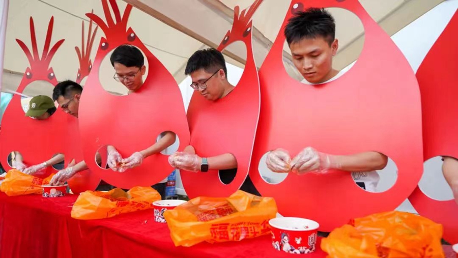 趣味龍蝦節(jié),好食又好玩。當(dāng)天活動(dòng)設(shè)置了多種以小龍蝦為主題的游戲。蝦鉗投籃、蝦猜大賽、趣釣小龍蝦、扒蝦王大賽……街坊們積極參與各種趣味游戲,現(xiàn)場(chǎng)不時(shí)爆發(fā)出一陣陣歡樂的笑聲。其中,最有趣的當(dāng)屬釣蝦游戲。來(lái)自泰美本地的稻田養(yǎng)殖小龍蝦被放置在大水池中,街坊們每每釣起一只小龍蝦,都會(huì)引來(lái)一陣歡呼聲。