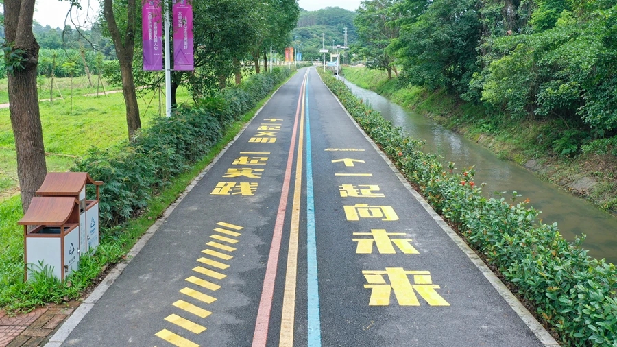 撿跑是時(shí)下的文明新風(fēng)。蓮湖村的撿跑騎行綠道總長為4.5公里,其中A段為1.2公里,B段為3.3公里。在騎行綠道中,羅陽不定期開展集環(huán)保、健康與休閑為一體的文明實(shí)踐活動(dòng),通過撿拾垃圾、跑步和騎行的方式,帶動(dòng)更多人參與到環(huán)保行動(dòng)。