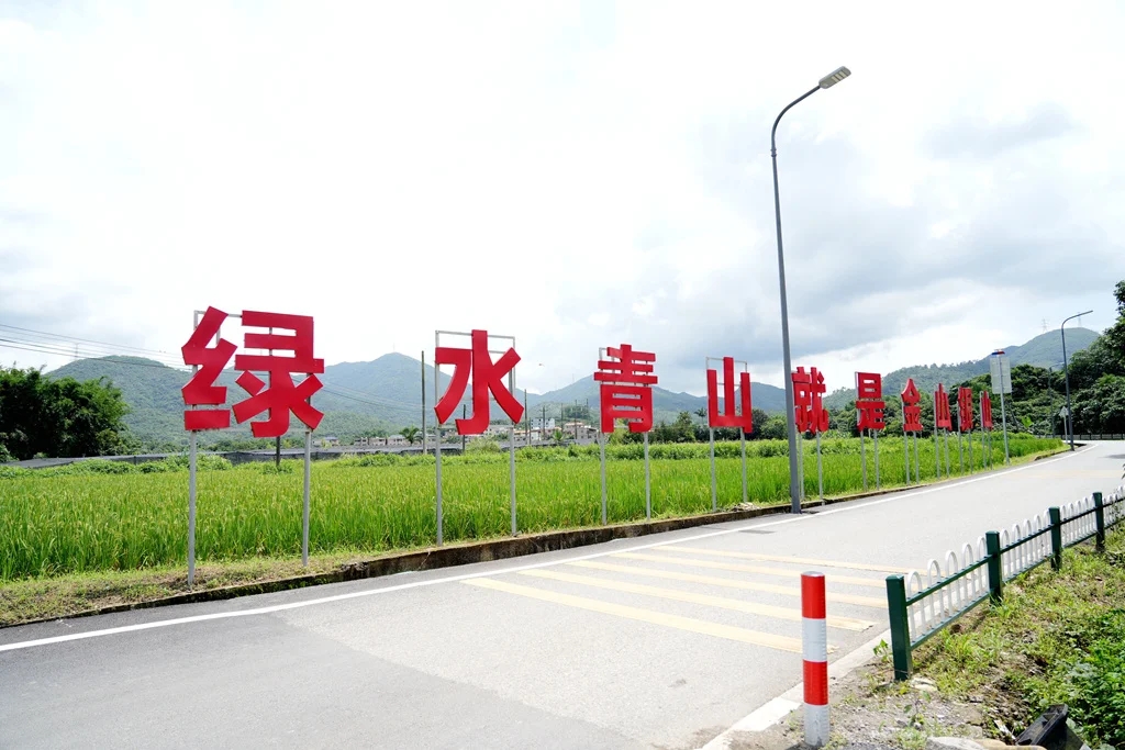 走進(jìn)新圩鎮(zhèn)花果村,映入眼簾的是平整寬敞的七彩花果路,路面鋪設(shè)瀝青,道路兩旁建了綠化竹籬笆,沿路設(shè)有公路驛站、服務(wù)停車區(qū)等。途經(jīng)村頭的工業(yè)區(qū)、花果村委會后,沿路是綠油油的水稻田,田邊寫著“綠水青山就是金山銀山”“打造美好鄉(xiāng)村共建幸福家園”,路邊還有“七彩花果 遇見西游”的公路驛站。夾麻坑河起源于青山水庫,蜿蜒穿過村莊,河中碧波蕩漾、流水潺潺,兩岸綠樹成蔭、郁郁蔥蔥,恰好印證了“綠水青山就是金山銀山”的生態(tài)理念。