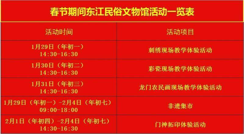 為營造歡樂祥和的節(jié)日氛圍,春節(jié)期間,東江民俗文物館精心籌備了精彩紛呈的民間傳統(tǒng)工藝現(xiàn)場教學(xué)體驗活動和非遺集市。在這個充滿喜慶氛圍的時刻,廣大市民可進(jìn)入文惠圈進(jìn)行活動報名,共同開啟一場別開生面的文化藝術(shù)之旅。值得一提的是,現(xiàn)場掃碼進(jìn)入“民俗互動程序”答題,每天前20位獲得“狀元”稱號的觀眾,可領(lǐng)取非遺小禮品一份,不要錯過哦!