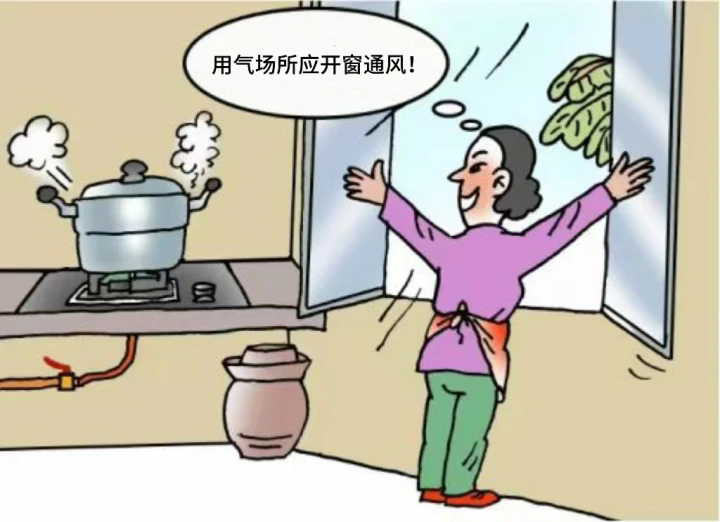 用氣時請保持室內通風,無論是在廚房烹飪美食,還是在浴室洗澡,都要開窗通風,確保燃氣充分燃燒,預防一氧化碳中毒。