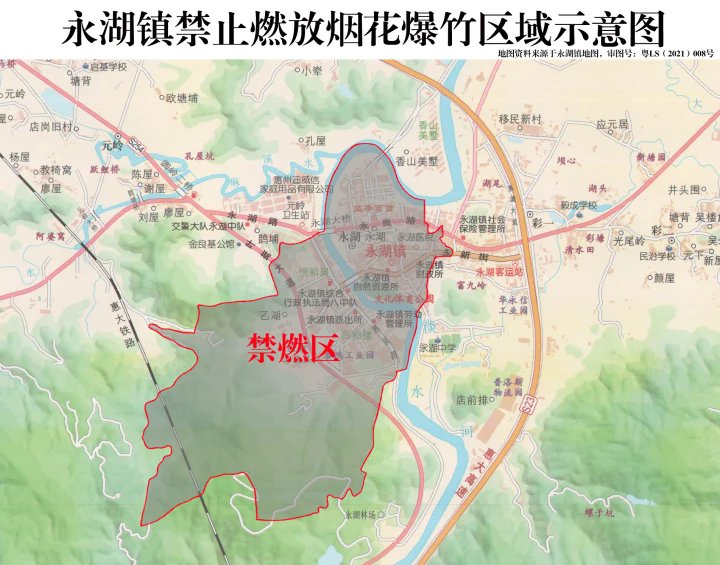 龍門縣禁燃區(qū)域?yàn)榭h城及周邊部分區(qū)域,范圍主要包括:東面由武深高速江廈段至武深高速龍門立交;南面由武深高速龍門立交至縣污水處理廠至S353線水貝出口至城西村Y294路口至圍心村;西面由圍心村至縣龍新路辦公區(qū);北面由縣龍新路辦公區(qū)至花圍村委羅江村小組豬肚湖路口至武深高速江廈段。