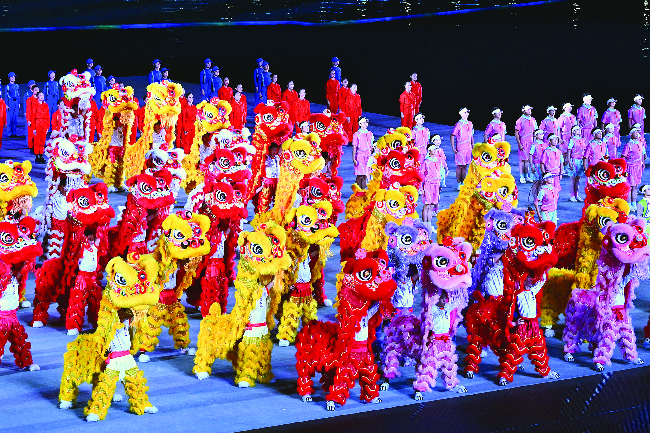 漫天星輝閃耀時,萬千豪情競風(fēng)流。馬龍、潘展樂、蘇炳添、王霜……熟悉的面孔接連出現(xiàn),來自五湖四海的運動員、教練員和裁判員一同入場。