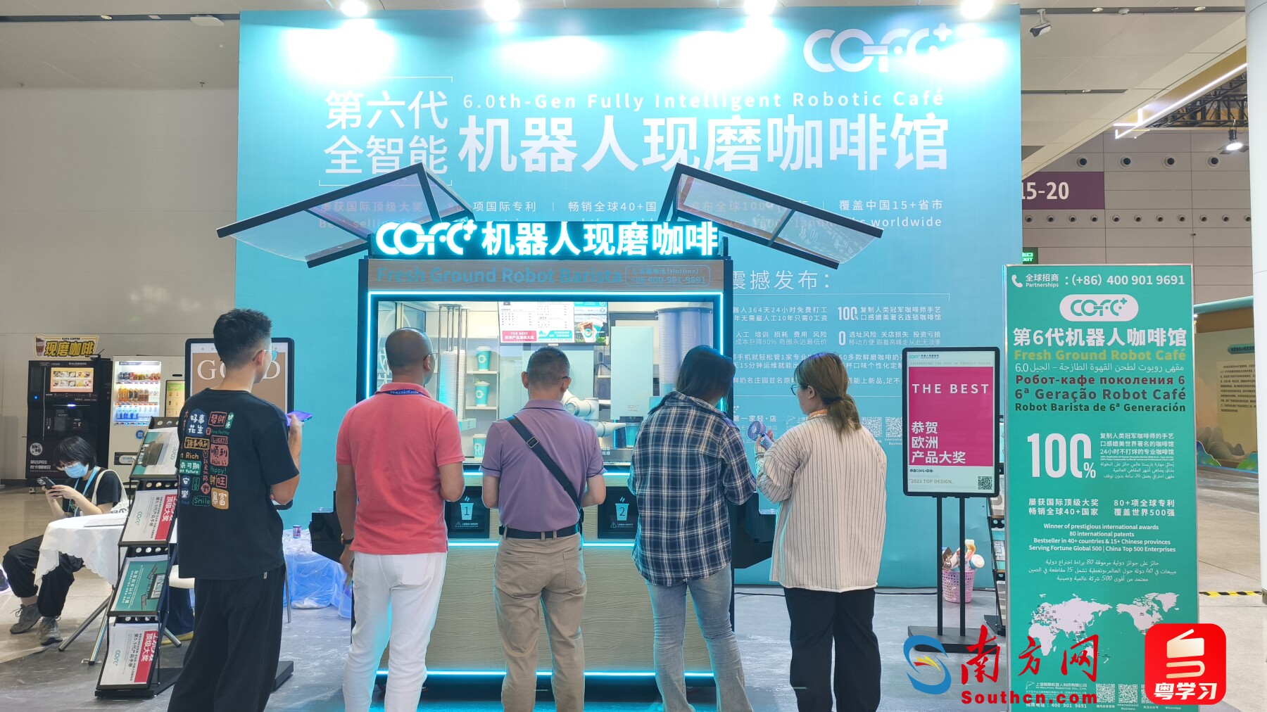 走進(jìn)文博會(huì)10號(hào)館展廳,映入眼簾的“COFE+機(jī)器人現(xiàn)磨咖啡”展位吸引了不少游客觀眾駐足排隊(duì)。作為展位負(fù)責(zé)人,上海氦豚機(jī)器人科技有限公司創(chuàng)始人韓非子(韓兆林)正忙碌地為客人介紹產(chǎn)品。
