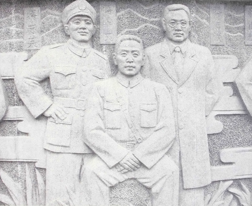 圖為諸暨市浬浦鎮(zhèn)盤山村的抗戰(zhàn)英雄浮雕像,左一為蔣志英(資料照片)。新華社發(fā)(諸暨市委宣傳部供圖)