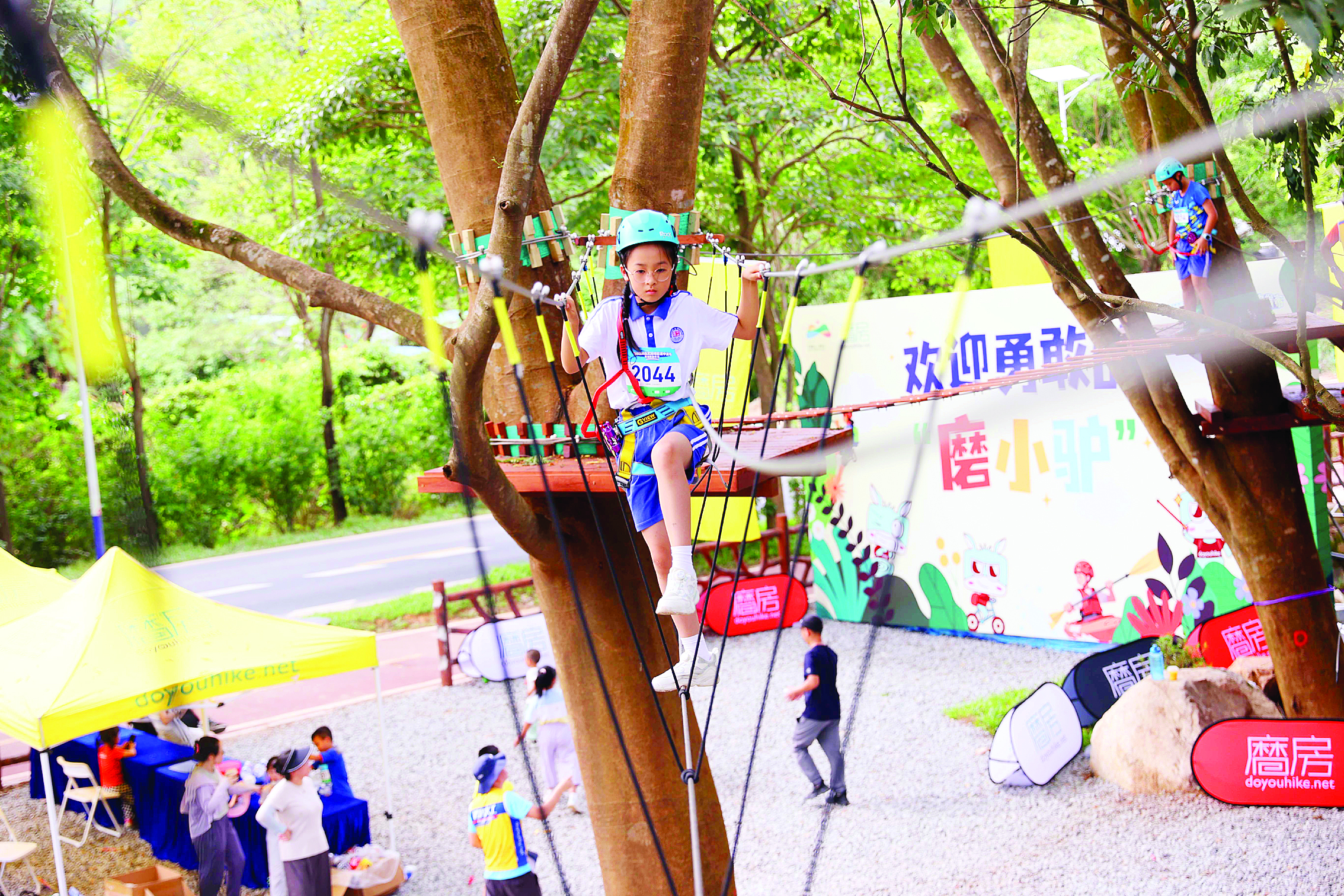 小朋友在磨房戶外運動中心玩叢林穿越項目。惠州日報記者楊建業(yè) 攝