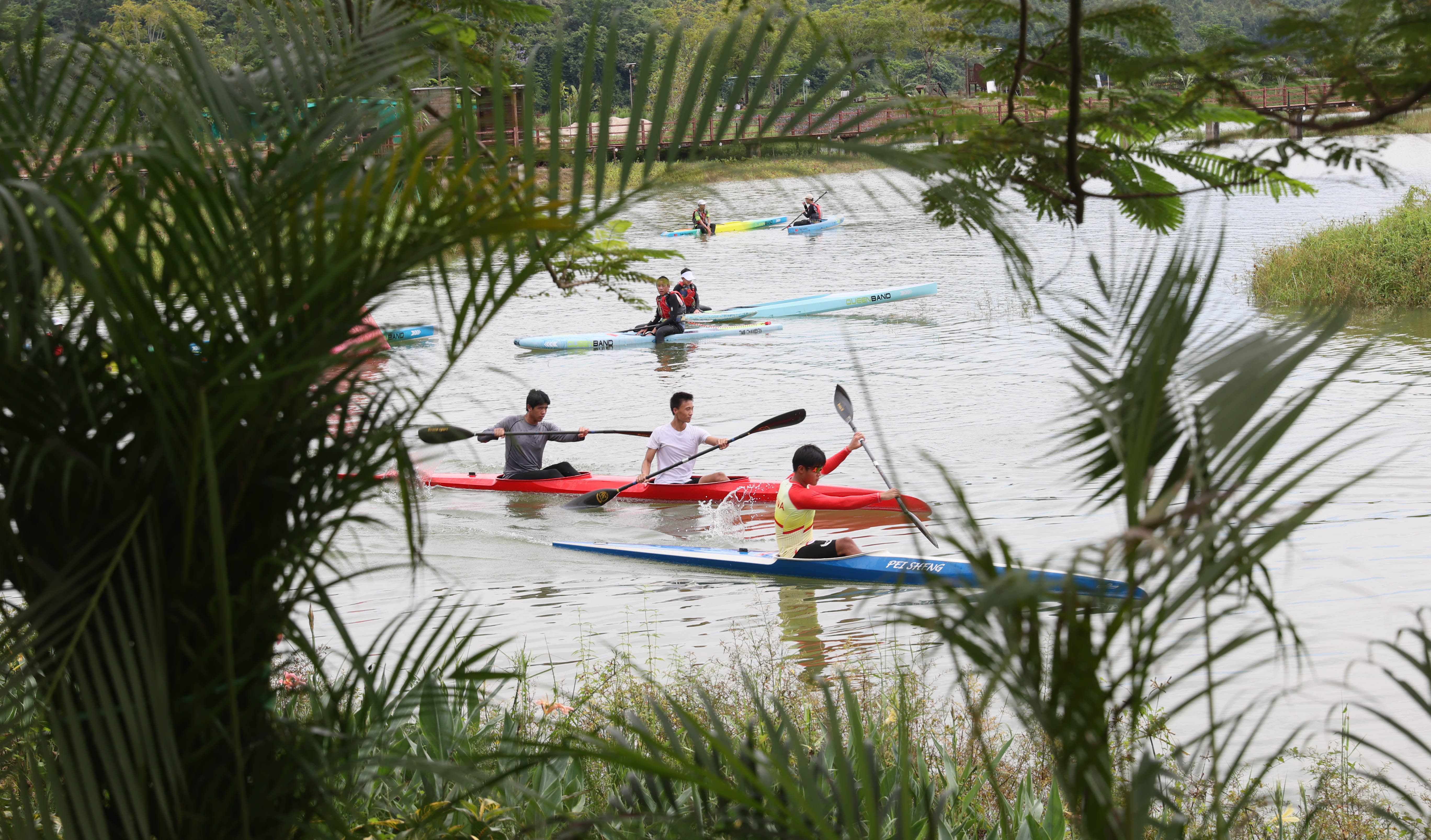游客在郭前村玩皮劃艇項(xiàng)目。 惠州日?qǐng)?bào)記者楊建業(yè) 攝