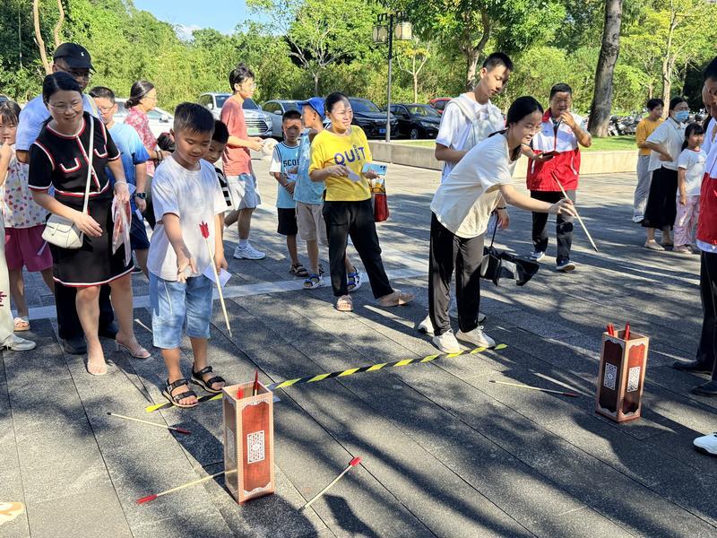 緊接著,互動體驗(yàn)區(qū)將活動推向高潮。居民們在志愿者指導(dǎo)下,親手制作花燈、剪刻窗花、包制月餅,在動手實(shí)踐中感受非遺魅力和中秋韻味。另一邊的趣動全運(yùn)區(qū),投壺競技、跳繩大闖關(guān)、呼啦圈擂臺賽等傳統(tǒng)與現(xiàn)代結(jié)合的運(yùn)動項(xiàng)目,讓參與者在挑戰(zhàn)中鍛煉身體,傳遞著全民健身的健康理念。此外,現(xiàn)場還設(shè)置了文明知識有獎問答,寓教于樂,宣傳普及《惠州市文明行為促進(jìn)條例》,提升居民的文明素養(yǎng)。