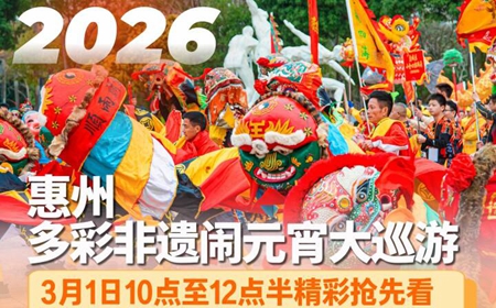 2026惠州多彩非遺鬧元宵大巡游3月1日上午10時-12時30分舉行,精彩亮點搶先看!