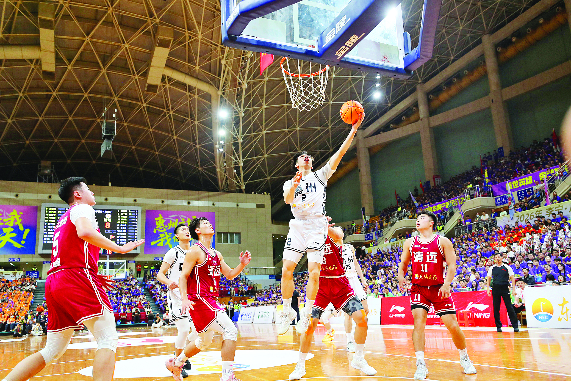 3月28日晚,惠州體育館內(nèi)燈火通明,人聲鼎沸。粵BA第二輪焦點(diǎn)戰(zhàn)在這里打響,惠州隊(duì)坐鎮(zhèn)主場迎戰(zhàn)清遠(yuǎn)隊(duì)。經(jīng)過四節(jié)鏖戰(zhàn),惠州隊(duì)最終以68比86不敵對手。然而,比分牌上冰冷的數(shù)字,卻無法掩蓋場內(nèi)涌動的熱血與溫情。