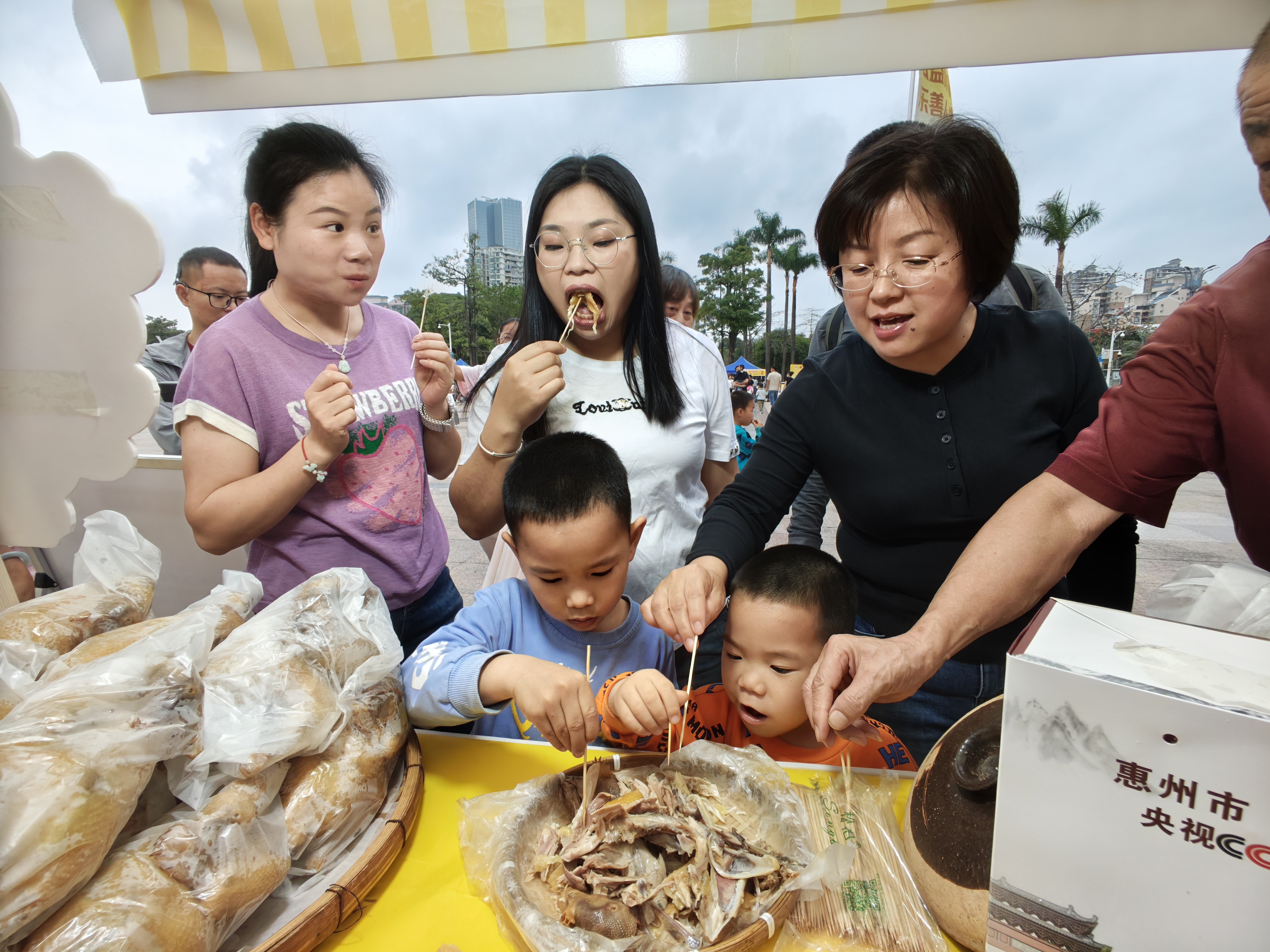 場外試吃東江鹽焗雞。