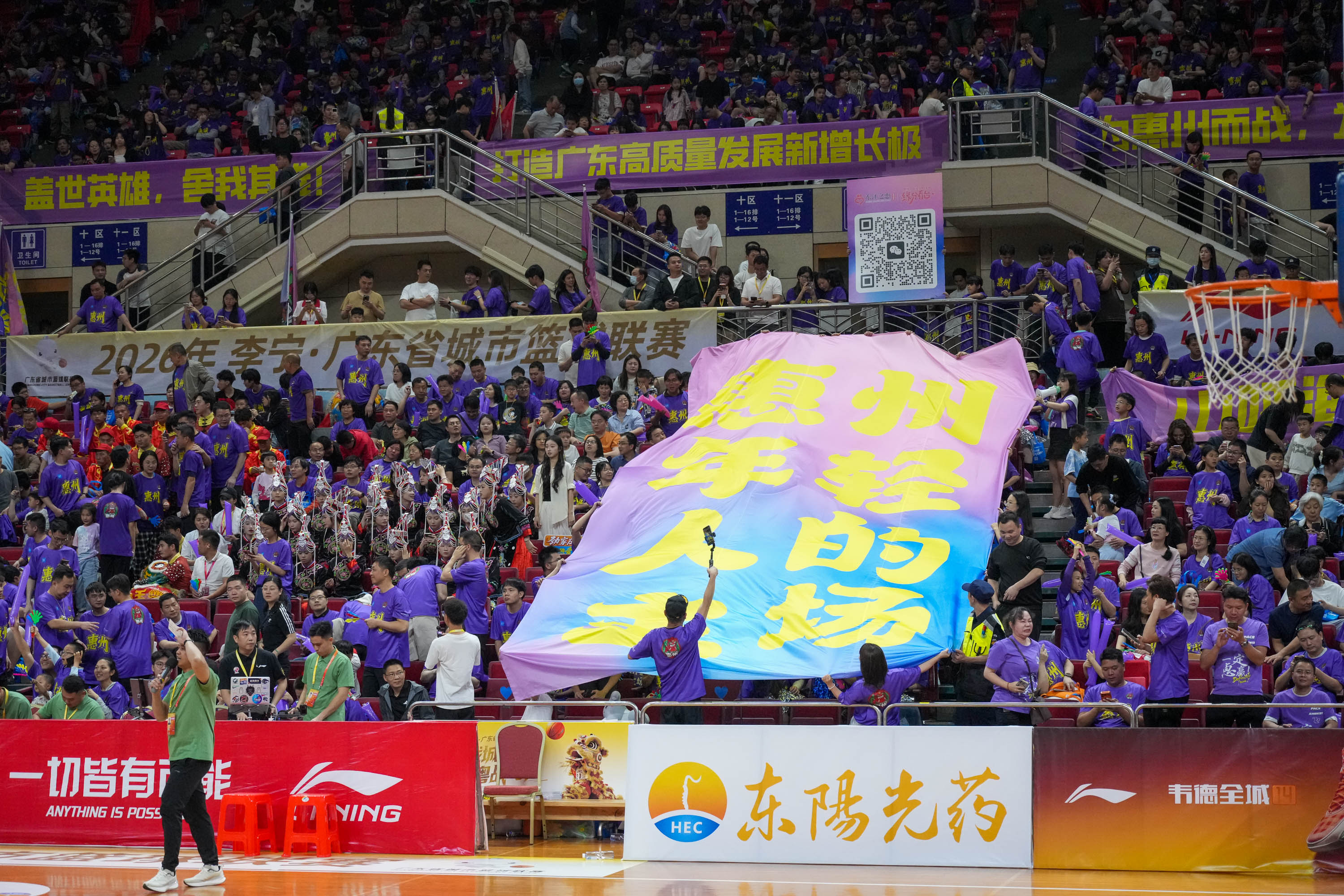 記者看到,“緣分看臺”區(qū)域洋溢在一片浪漫的氛圍中。單號坐的都是男生,雙號區(qū)域?yàn)榕信钨e穿插而坐,手里拿著紫色應(yīng)援棒、捧花、口號牌,興致高昂。“惠州隊(duì),加油”“防守,防守”……沒有傳統(tǒng)相親的拘謹(jǐn)與尷尬,在這里,籃球成為最佳“破冰”話題,吶喊成為他們拉近彼此距離的紐帶。男女嘉賓們進(jìn)球時(shí)一起并肩歡呼,間隙里輕松交流,陌生感在共同的熱愛中迅速消融。
