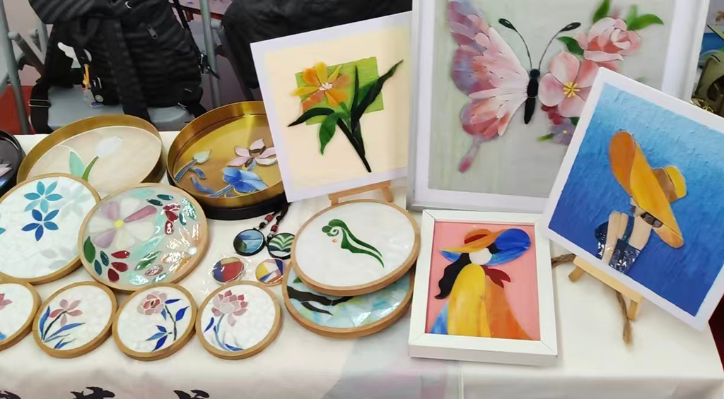 現(xiàn)場,多款本土特色手工文創(chuàng)產(chǎn)品格外吸睛,參展企業(yè)紛紛以產(chǎn)品為載體,為惠州文化發(fā)展賦能添力。惠州市藝典彩玻建材有限公司帶來了多款精美的玻璃工藝品,公司總經(jīng)理金美莉介紹:“你看,這是我們用彩色玻璃制作的藝術(shù)鑲嵌作品,將龍門年桔的元素融入其中,以玻璃為載體呈現(xiàn)文創(chuàng)魅力,形式十分新穎。我們依托彩色玻璃研發(fā)了各類文創(chuàng)產(chǎn)品。在助力環(huán)南昆山—羅浮山縣鎮(zhèn)村高質(zhì)量發(fā)展引領(lǐng)區(qū)建設(shè)中,我們免費為周邊鄉(xiāng)村的婦女開展玻璃工藝品手工DIY材料包培訓,讓她們能在家門口實現(xiàn)就業(yè)增收。”