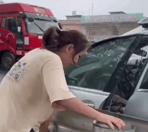 奮力用身體撐開(kāi)車(chē)門(mén)