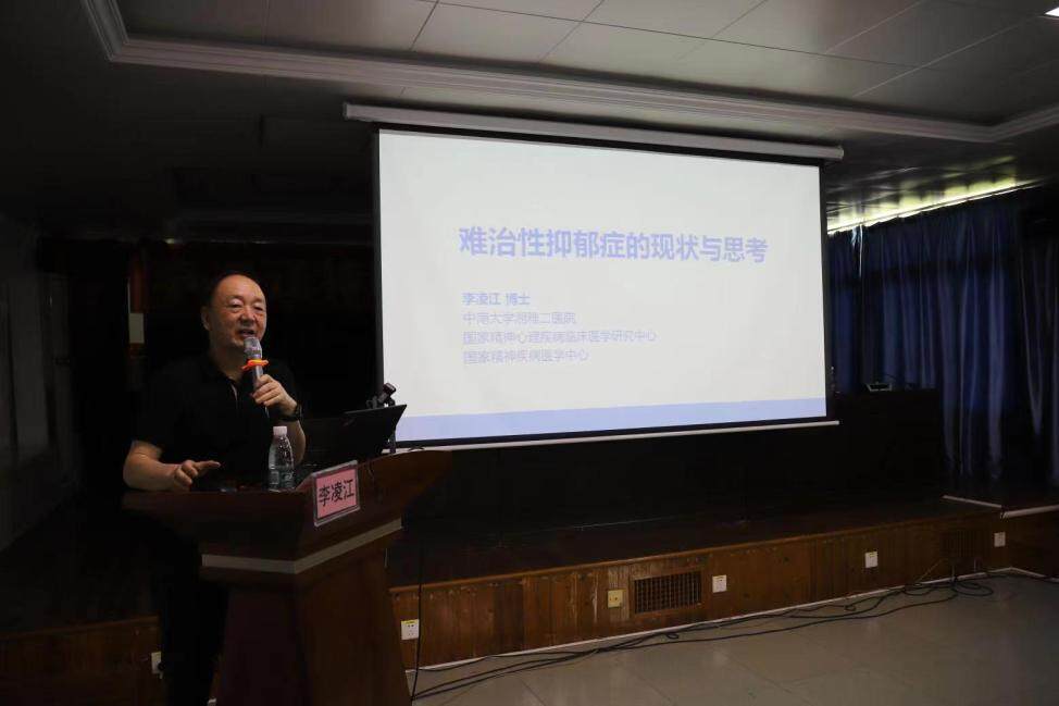 授牌儀式結(jié)束后,市二院舉辦學(xué)術(shù)交流活動(dòng),李凌江現(xiàn)場(chǎng)開(kāi)展題為《難治性抑郁的診治新進(jìn)展》的專(zhuān)業(yè)授課,并且該院特聘教授劉鐵榜也開(kāi)展《精神分裂癥的精神病理與診斷》專(zhuān)題授課。