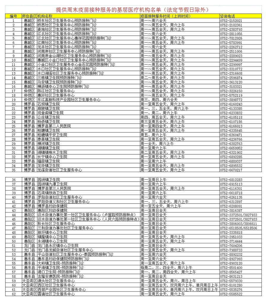 那么,惠州情況如何?連日來(lái),記者進(jìn)行了走訪。8月18日,記者從市衛(wèi)生健康局獲悉,目前全市有62家基層醫(yī)療機(jī)構(gòu)開(kāi)展周末疫苗接種服務(wù)。