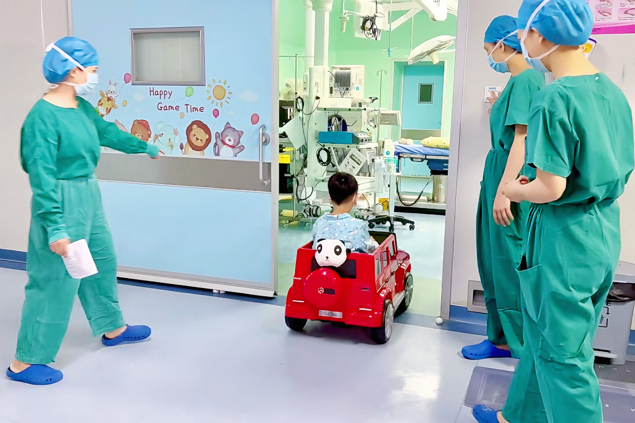 就醫(yī)需要安靜的環(huán)境,由于婦幼保健院的特殊性,少不了出現(xiàn)兒童的哭喊聲,孩子做手術(shù)哭鬧也大大增加了家長的擔(dān)憂。為此,市第一婦幼保健院打造“兒童無哭聲手術(shù)室”,讓患者可以在手術(shù)室等候區(qū)的游戲區(qū)玩耍,甚至可以開著兒童電動(dòng)車從術(shù)前準(zhǔn)備區(qū)進(jìn)入手術(shù)室。這些暖心的小舉措,給患兒足夠的術(shù)前心理緩沖時(shí)間,能有效緩解患兒術(shù)前緊張焦慮情緒,保證患兒安全、舒適,讓手術(shù)變得更有溫度。