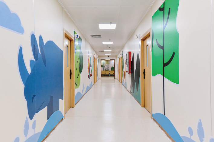 溫暖的卡通墻繪、漂浮的五彩云朵燈、萌趣的小動物腳印,候診區(qū)的親子角、繪本架、涂鴉墻相映成趣,母嬰室、兒童馬桶、踩腳凳等配套盡顯貼心關(guān)愛……走進(jìn)市第一人民醫(yī)院兒科門診,仿佛走進(jìn)“療愈森林”,每一個細(xì)節(jié)都彰顯著兒童友好的元素。