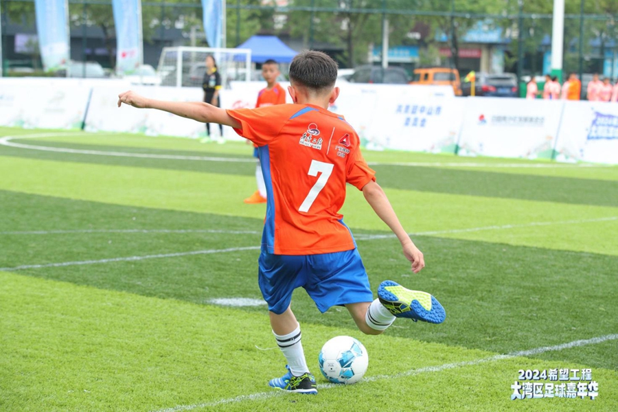 2024年希望工程·大灣區(qū)足球嘉年華公益活動在中山市舉辦。來自廣發(fā)銀行鄉(xiāng)村振興駐點的新疆阿克亞村和江西會昌文武壩鎮(zhèn)的兩支廣發(fā)希望球隊,與來自全國各地的另外18所鄉(xiāng)村學(xué)校球隊共同競逐綠茵場,為足球揮灑汗水。