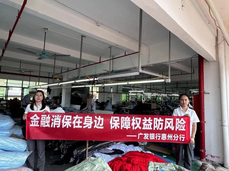 為充分展示金融消保新?lián)?dāng)、新氣象,廣發(fā)銀行惠州東平支行延伸服務(wù)半徑,深入惠州市捷航紡織有限公司,針對金融基礎(chǔ)弱、獲教渠道少的工人群體開展“金融消保在身邊 保障權(quán)益防風(fēng)險”宣傳活動。