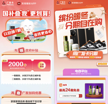 許先生的感慨背后,是廣發(fā)卡積極響應(yīng)國家政策,持續(xù)發(fā)力“以舊換新”。圍繞線上消費場景,廣發(fā)卡聯(lián)合京東、拼多多、唯品會、小米商城、榮耀商城、華為商城等消費行業(yè)商戶推出分期滿減活動,在享受“以舊換新”置換優(yōu)惠的基礎(chǔ)上疊加廣發(fā)卡分期優(yōu)惠。同時,進(jìn)一步整合“發(fā)現(xiàn)精彩”App及廣發(fā)商城優(yōu)惠,讓客戶消費實現(xiàn)“領(lǐng)券-支付-核銷”全鏈路閉環(huán)。此外,廣發(fā)卡還與銀聯(lián)云閃付合作,在技術(shù)層面克服系統(tǒng)對接、數(shù)據(jù)傳輸?shù)入y題,讓 “國補優(yōu)惠” 與我行 “滿領(lǐng)優(yōu)惠” 的疊加更“絲滑”,確保客戶消費更順暢。