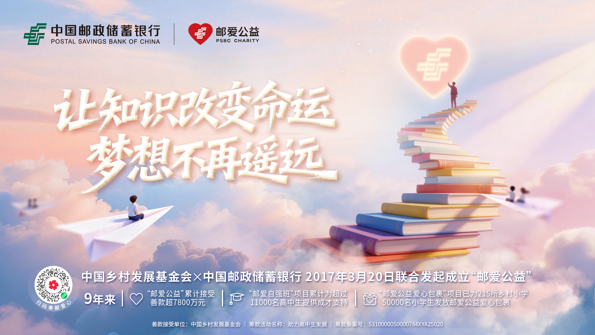 春回大地,愛滿人間。2026年3月20日,郵儲銀行迎來了第九個“郵愛公益日”。自2017年郵儲銀行攜手中國鄉(xiāng)村發(fā)展基金會共同發(fā)起“郵愛公益”項目以來,這份以“普惠萬家,郵愛圓夢”為初心的善舉已走過九個春秋。九年間,“郵愛公益”累計籌集善款超7800萬元,在全國21個省份的47個縣域開設(shè)“郵愛自強(qiáng)班”,直接資助了超過11000名家庭經(jīng)濟(jì)困難的優(yōu)秀高中學(xué)子,助力他們圓夢大學(xué),改變了無數(shù)孩子的人生軌跡。