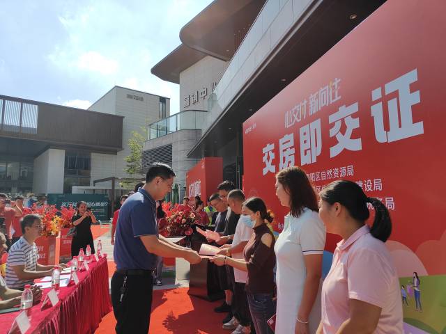 在該區(qū)舉行的“交房即發(fā)證”活動(dòng)上,文瀚花園近20戶業(yè)主現(xiàn)場登上舞臺(tái),從該區(qū)自然資源局不動(dòng)產(chǎn)登記中心負(fù)責(zé)人手中接過房屋的“不動(dòng)產(chǎn)權(quán)證”。