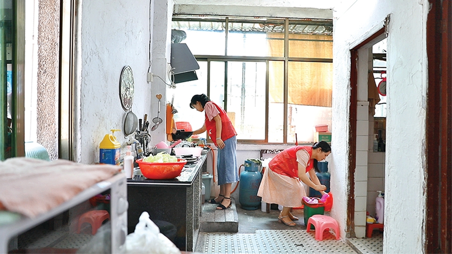 廚房里清洗食材和炒菜的聲音交雜傳來,七旬嚴(yán)婆婆倚著墻看著兩個(gè)忙碌的身影,內(nèi)心很是感動(dòng)。